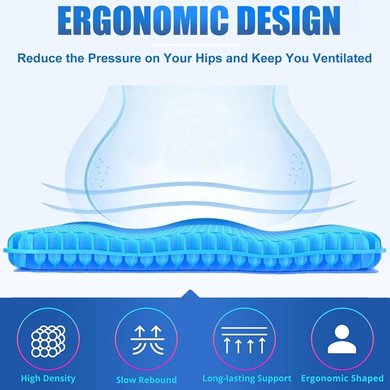 Redescubre el placer de viajar. Nuestro cojín de gel es tu oasis de confort. Alivia espalda y ciática con soporte adaptable y transpirable. Cada kilómetro será un disfrute.