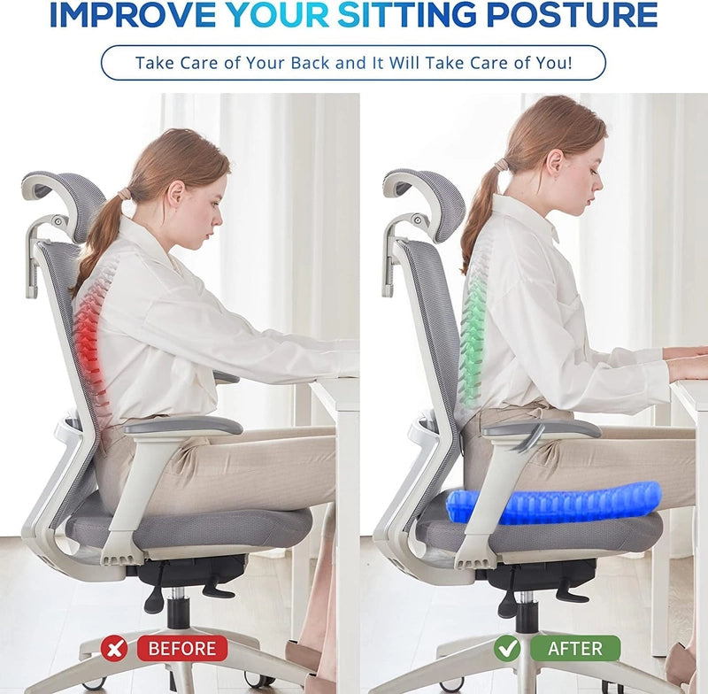 Su base antideslizante asegura que se quede en su lugar, ya sea en la silla de oficina, el asiento del coche o tu silla de ruedas, brindando soporte constante.